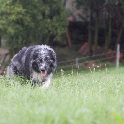 Blue ist mit 7 Monaten aus den USA zu uns gekommen. Er ist ein junger aufgeweckter, freundlicher sehr folgsamer junger Hund. Mit 8 Monaten hat er angefangen an den Schafen zu arbeiten, wo er sehr viel Talent zeigt. Er ist ruhig und vorrauschauend bei der Arbeit, möchte alles richtig machen. Er hat alle Erwartungen übertroffen und wir sind sehr gespannt wie er sich in der Zukunft entwickeln wird.