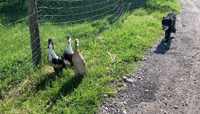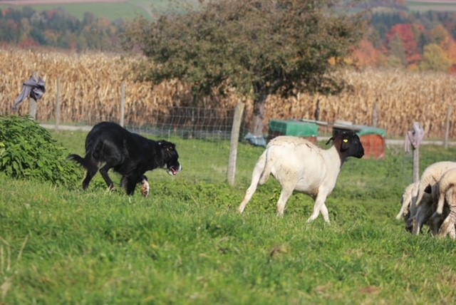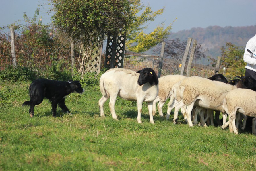 Meggie wird in Rally Obedience, Agility Trainiert und arbeitet an Schafen und enten.